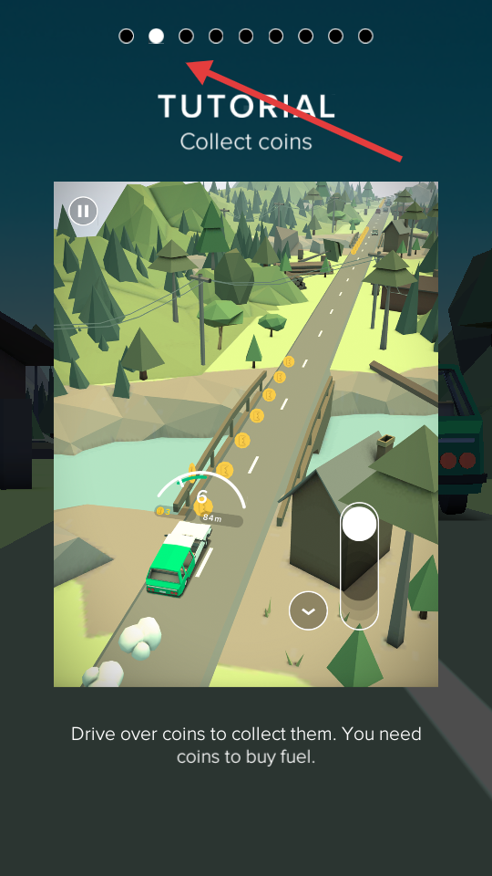 1、提拉屏幕右下角油門控制加速,左右滑動切換車道收集金幣。