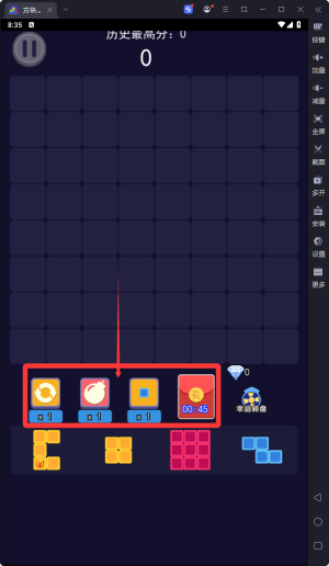 1、游戲?yàn)橥婕姨峁┝怂姆N不同類型的方塊,玩家可以隨意挑選,靈活放置。這種多樣化的方塊選擇增加了游戲的趣味性和策略性。