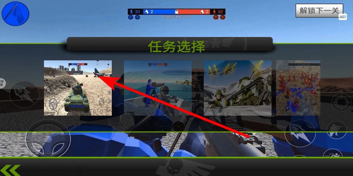 2、任務選擇界面有多種場景任務,選擇坦克作戰(zhàn)任務時,駕駛坦克要注意地形,利用山坡等掩體躲避敵方火力,找準時機開炮攻擊。