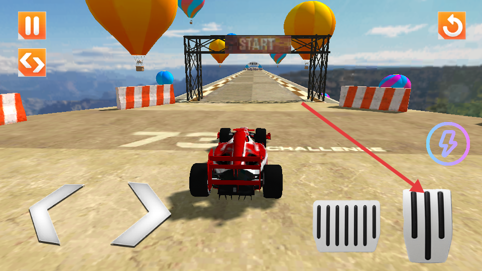 1、通過左右虛擬按鍵控制方向,長按加速鍵觸發(fā)氮氣推進(jìn)系統(tǒng)。