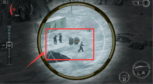 2、遠(yuǎn)距離狙擊時注意風(fēng)向和呼吸條,等晃動最小的時候開槍,瞄準(zhǔn)頭部能一擊必殺,避免打偏驚動其他人。