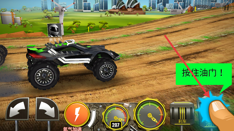 1、選擇心儀怪物卡車(chē)參與競(jìng)速,通過(guò)漂移加速等操作超越對(duì)手。