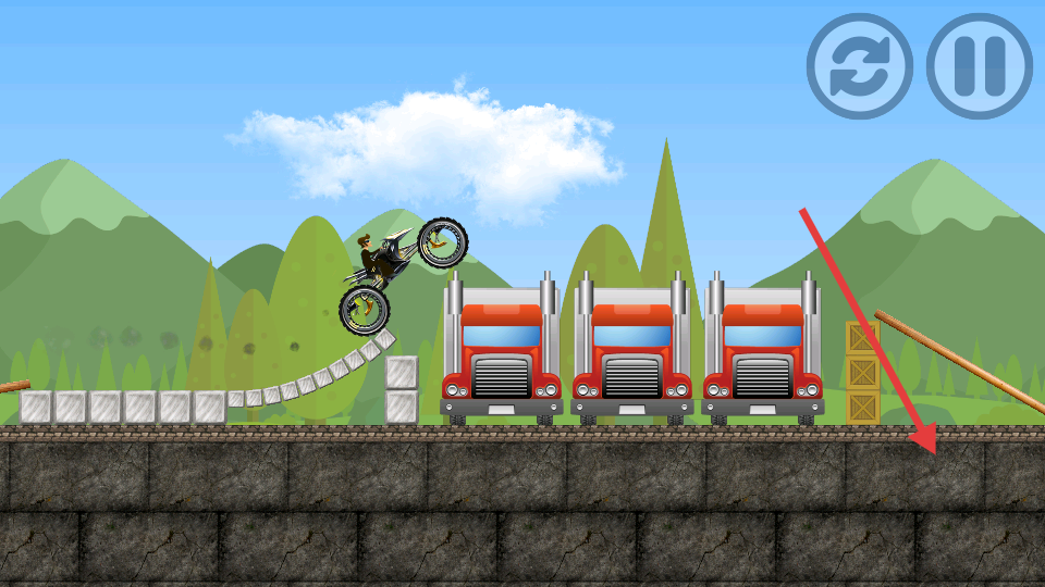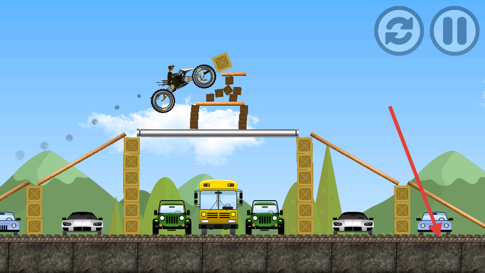 1、傾斜設備控制車輛平衡,點擊屏幕加速沖刺跨越障礙。