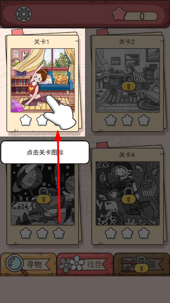 1、進(jìn)入游戲后,選擇任意關(guān)卡開始挑戰(zhàn),屏幕會顯示兩張看似相同的圖片,仔細(xì)觀察找出其中的差異之處,熟悉點(diǎn)擊操作方式。