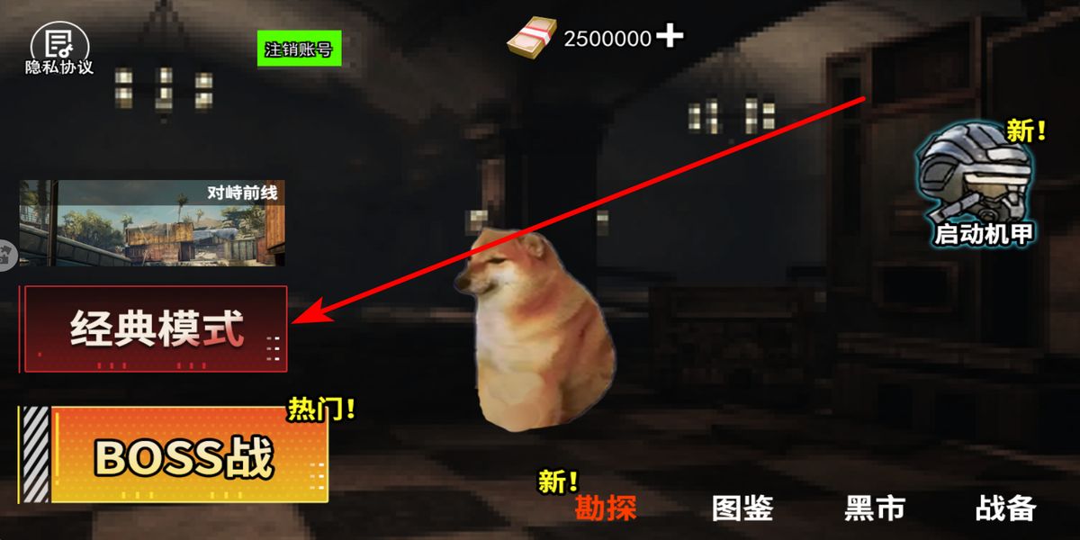 1、在啟動界面點擊開始游戲,進入模式選擇頁,選經(jīng)典模式,該模式為基礎(chǔ)玩法,能快速開啟探索射擊流程,熟悉游戲操作與修狗對戰(zhàn)節(jié)奏。