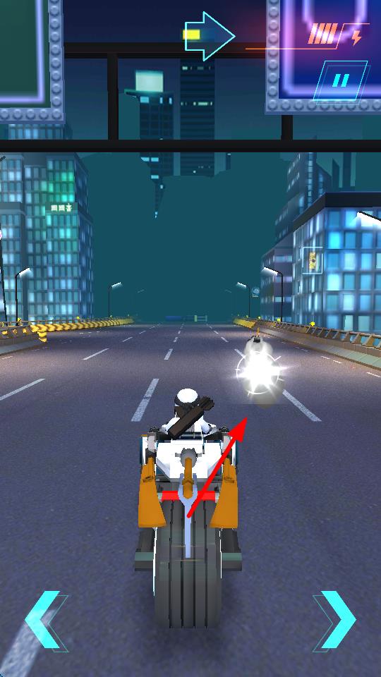 2、騎行過程中通過傾斜屏幕控制摩托車轉向,點擊右側屏幕加速、左側屏幕剎車,靈活躲避路上的障礙物與其他車手。