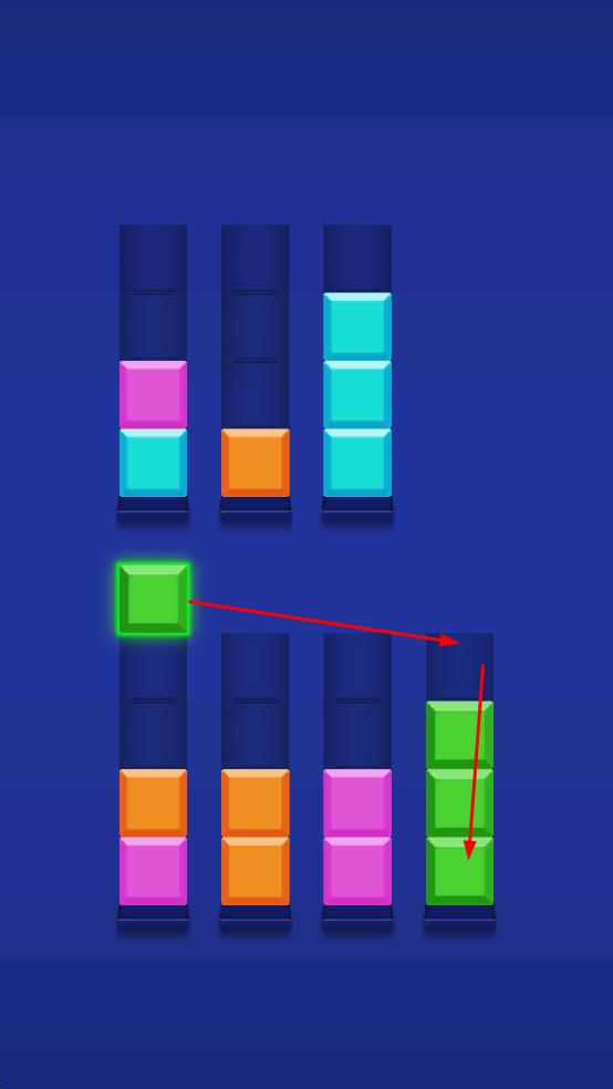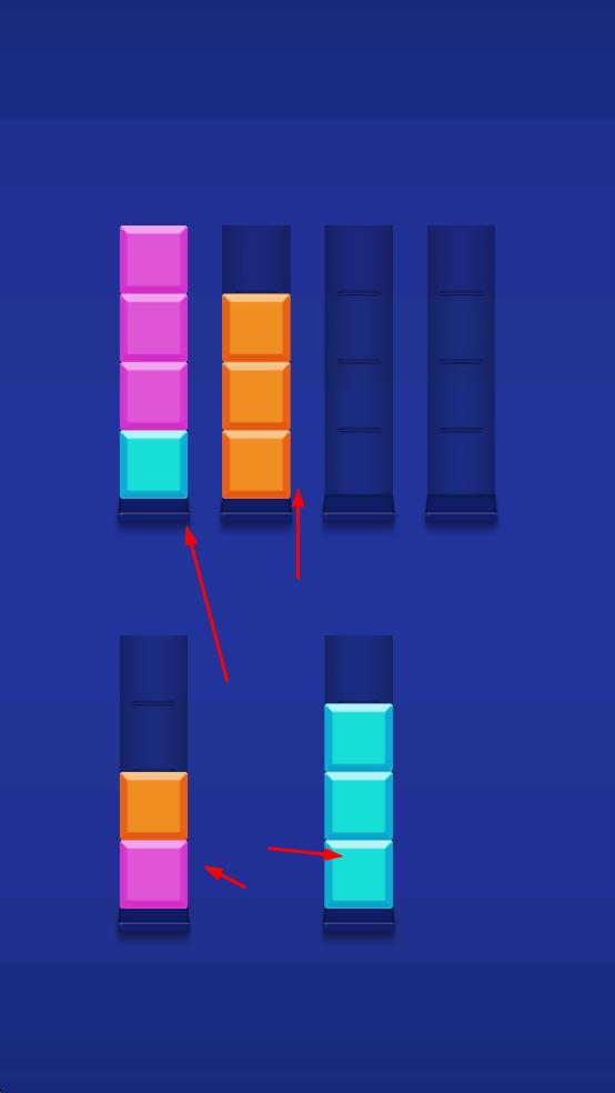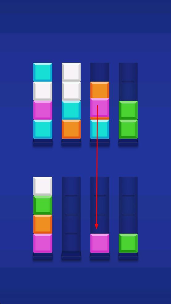1、點(diǎn)擊彩色方塊,將其移動(dòng)到同色的豎列中。
