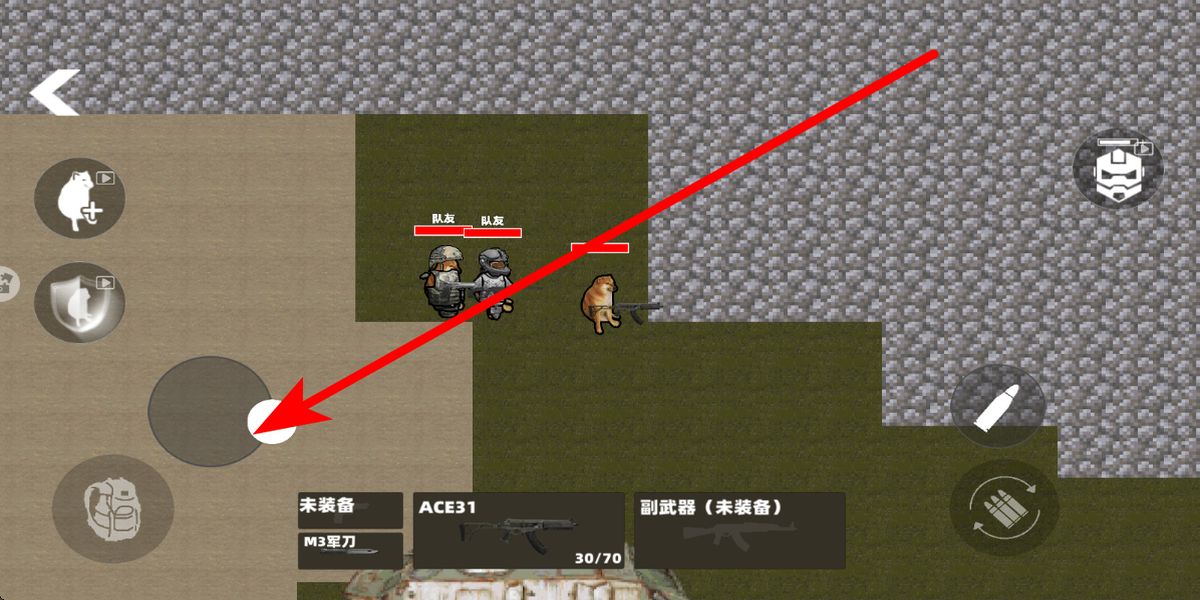 1、左側(cè)虛擬搖桿操控角色移動(dòng),調(diào)整站位,配合隊(duì)友包抄或支援,留意地形尋找掩體,躲避敵人火力,保障自身生存,為團(tuán)隊(duì)輸出創(chuàng)造條件。