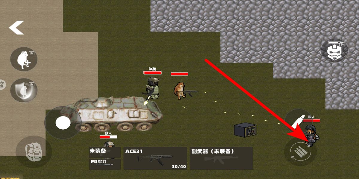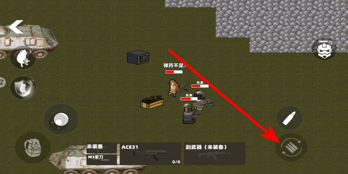 3、右側(cè)點(diǎn)擊切換武器,彈藥不足時(shí)及時(shí)更換槍械,戰(zhàn)場(chǎng)中收集彈匣補(bǔ)充彈藥,確?;鹆Τ掷m(xù),根據(jù)敵人距離與類型,靈活切換近戰(zhàn)、遠(yuǎn)攻武器。