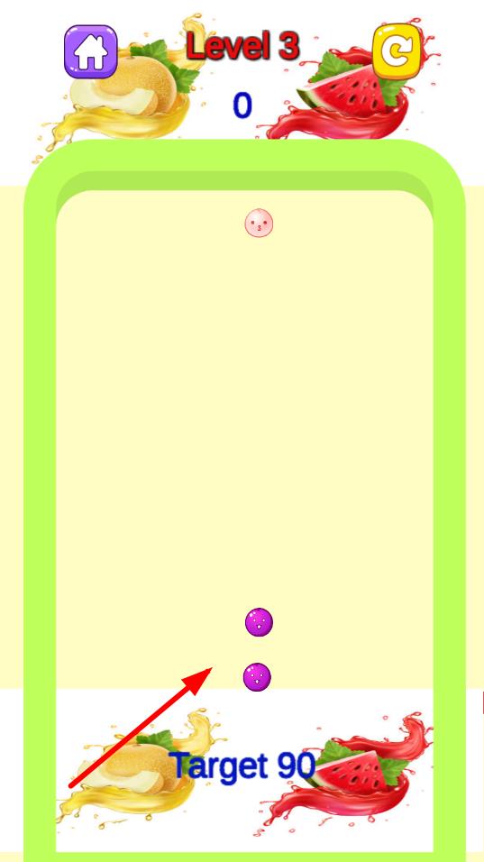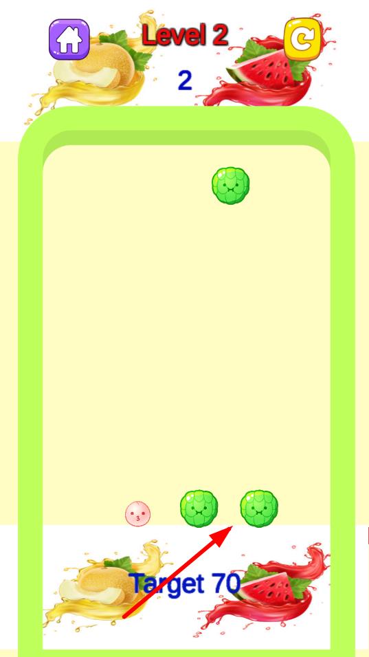 1、基礎(chǔ)合并操作:通過(guò)拖曳屏幕上相同類型的水果使其靠近合并,合并后水果體積變大且分?jǐn)?shù)增加,優(yōu)先合并密集區(qū)域的相同水果,為后續(xù)掉落的水果預(yù)留空間,積累基礎(chǔ)分?jǐn)?shù)。