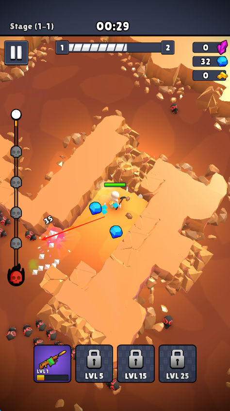 3、持續(xù)戰(zhàn)斗,一邊消滅不斷涌現(xiàn)的敵人,一邊探索地圖收集資源,提升槍械等級,完成關(guān)卡目標。