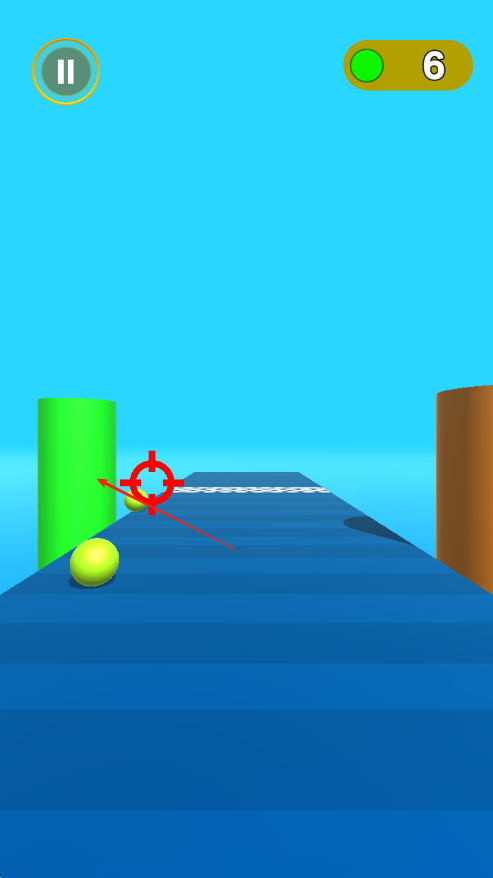 1、進(jìn)入游戲,留意屏幕右上角綠色數(shù)字,代表可使用的球數(shù)量,如【6】,滑動(dòng)屏幕調(diào)整紅色十字準(zhǔn)星位置。