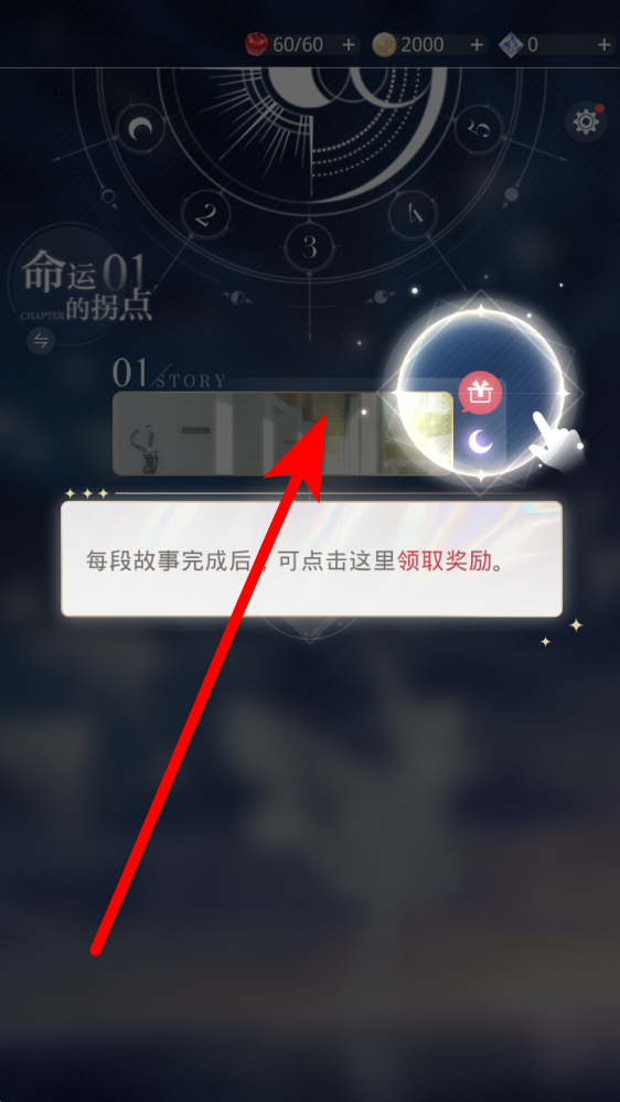 3、每段故事完成后,界面會(huì)浮現(xiàn)領(lǐng)取獎(jiǎng)勵(lì)提示標(biāo)識(shí),留意故事模塊旁的提示位置并點(diǎn)擊,即可獲取該段故事達(dá)成后的獎(jiǎng)勵(lì),解鎖更多內(nèi)容。
