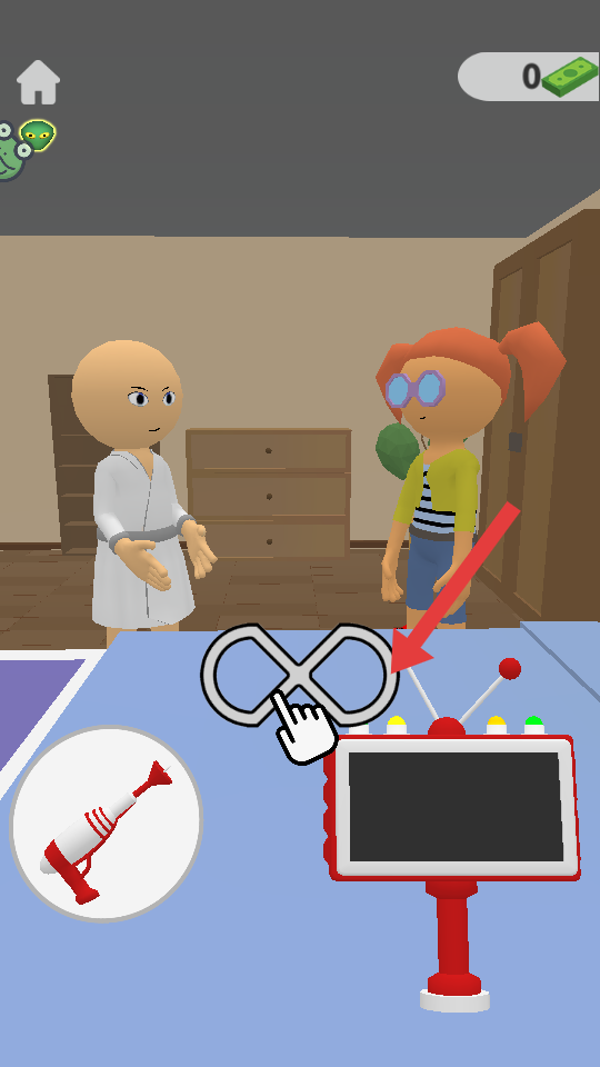 1、進(jìn)入游戲后按屏幕指引點(diǎn)擊場(chǎng)景中的∞形道具,安裝到外星人電視裝置上,觸發(fā)外星人投影顯影。