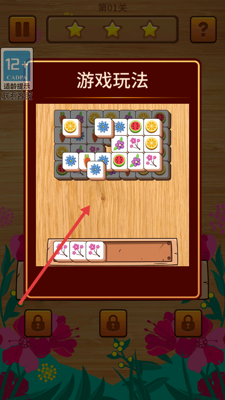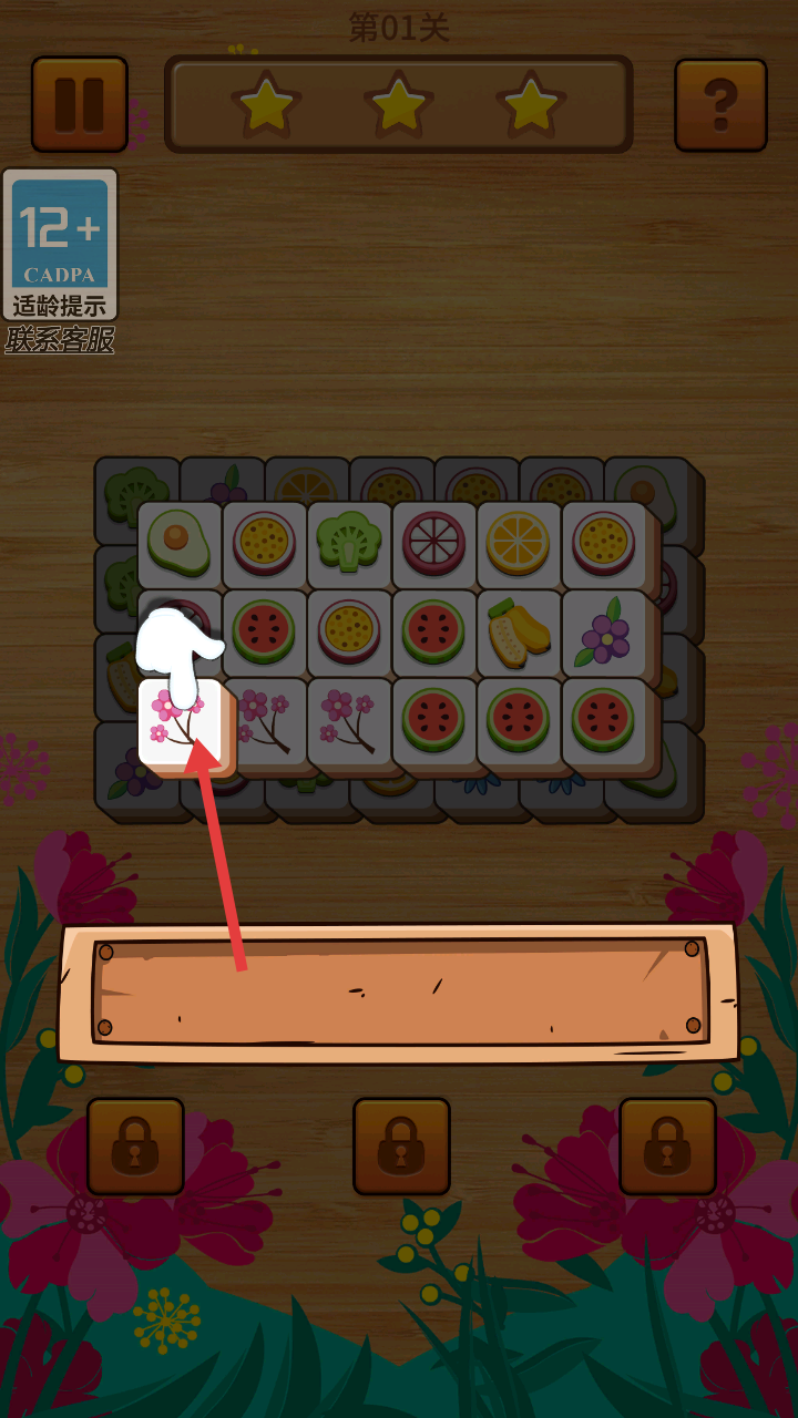 1、進(jìn)入游戲后選擇對(duì)應(yīng)關(guān)卡,點(diǎn)擊界面中兩個(gè)相同且無遮擋的圖案,即可完成消除,開啟首輪消除挑戰(zhàn)。