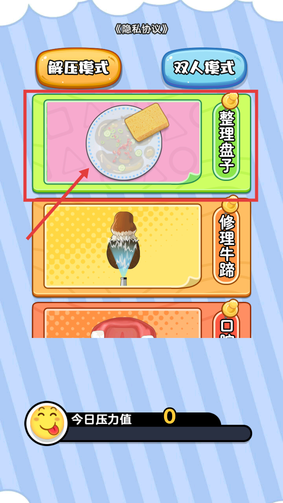 1、進(jìn)入【解壓模式】,選擇【整理盤子】任務(wù),開啟餐具清潔的解壓玩法,熟悉操作邏輯。