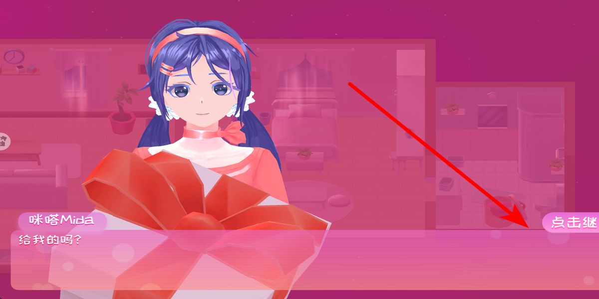 3、對話互動與米塔交流時,出現(xiàn)對話彈窗后點(diǎn)擊繼續(xù)按鈕,推進(jìn)對話流程,了解米塔的想法與情緒,解鎖情感互動及故事分支。