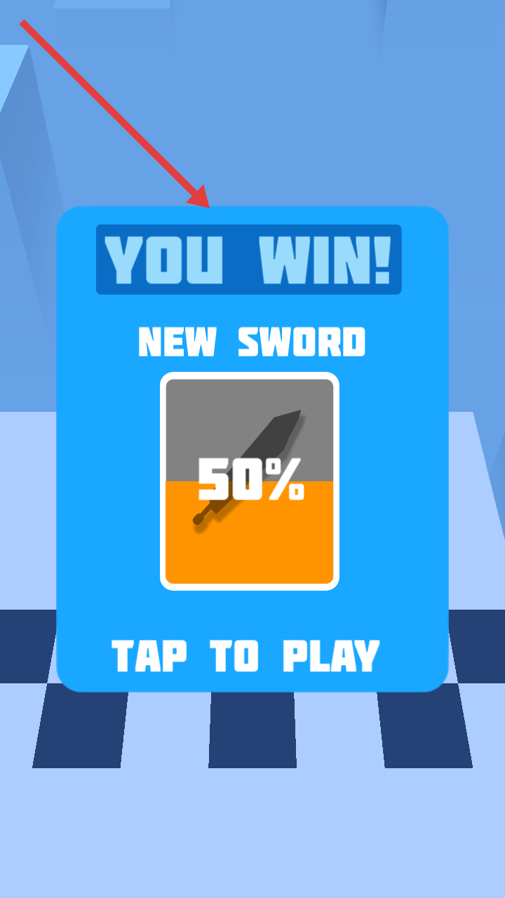 3、通關(guān)后出現(xiàn)YOU WIN界面,點(diǎn)擊TAP TO PLAY進(jìn)入下一關(guān),解鎖新劍,持續(xù)挑戰(zhàn)。