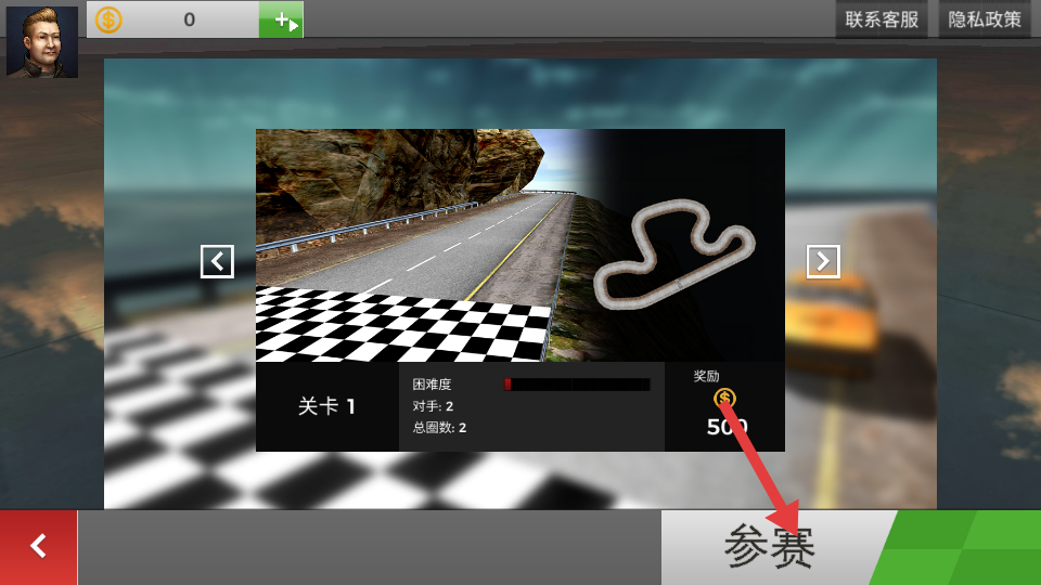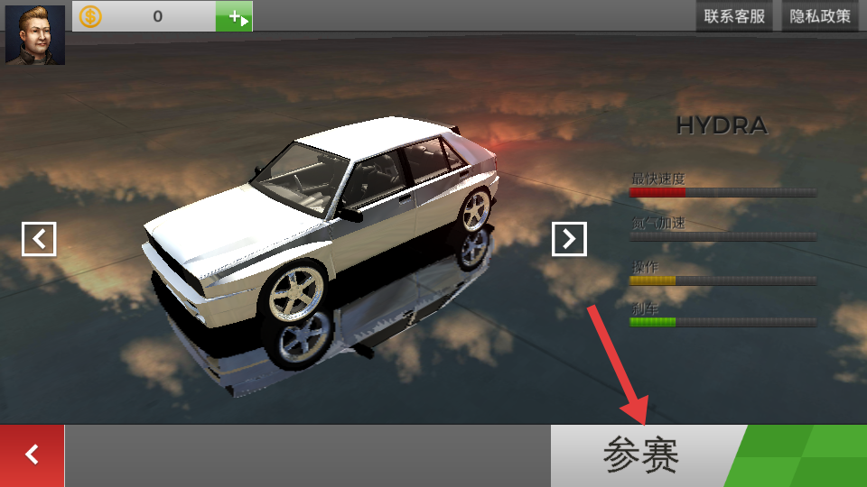 1、進(jìn)入游戲后在車庫選擇心儀的豪華跑車,根據(jù)喜好挑選競速模式,在賽道起點做好準(zhǔn)備,等待倒計時結(jié)束后踩下油門開啟競速。