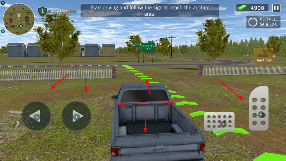 2、跟隨綠色路徑和路標(biāo),駕駛皮卡車前往拍賣區(qū)域,途中經(jīng)過場(chǎng)景地標(biāo)。