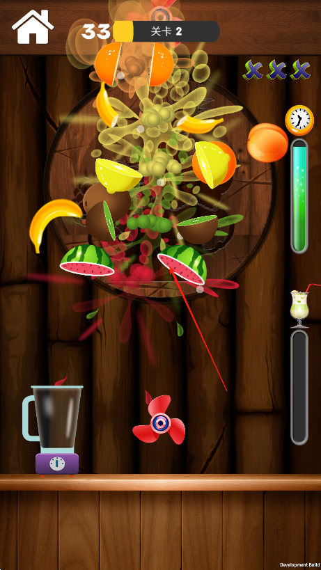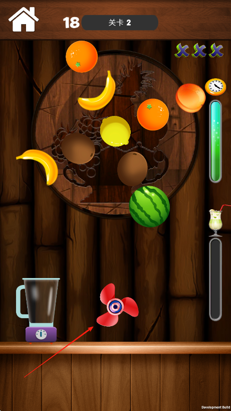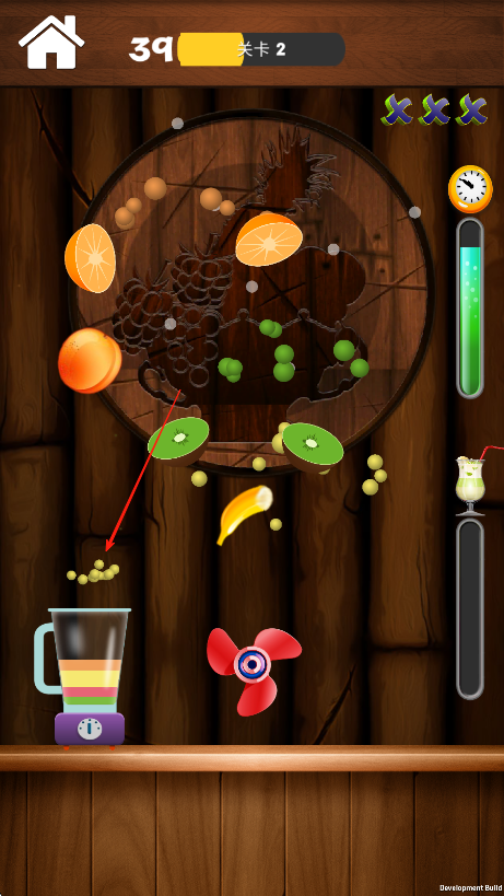 3、注意將切好的水果碎片引導(dǎo)進(jìn)下方的榨汁機(jī)、完成關(guān)卡目標(biāo)獲取勝利。