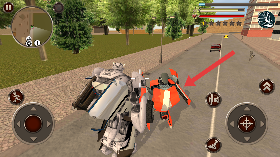 3、探索城市,按小地圖標(biāo)識完成任務(wù),利用變形優(yōu)勢,解鎖新區(qū)域,收集資源升級機器人,成為城市中的英雄戰(zhàn)力。
