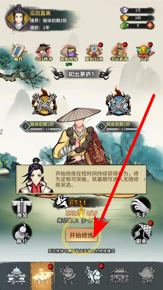 3、看到修煉界面,點擊開始修煉,角色將持續(xù)的獲得修為,積累到一定程度可突破境界,開啟更深入的修煉模式,培養(yǎng)提升角色戰(zhàn)力。