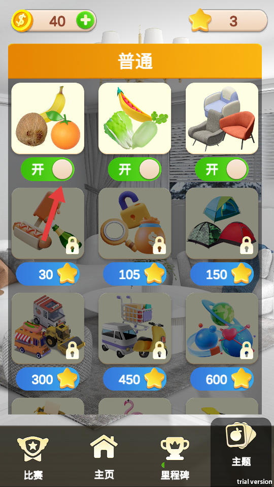 2、金幣主題解鎖:積累金幣可解鎖動物、美食、風景等多種圖案主題,每個主題風格獨特,讓消除界面不斷換新,避免視覺疲勞保持新鮮感。