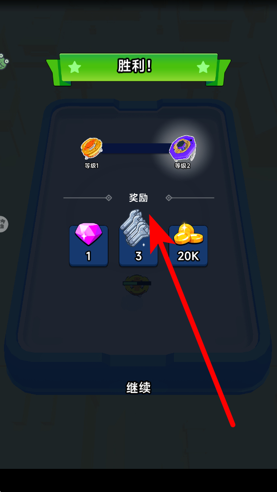 3、戰(zhàn)斗勝利后,進(jìn)入結(jié)算界面,可獲取寶石、道具、金幣等獎勵(lì),點(diǎn)擊繼續(xù)按鈕,返回關(guān)卡選擇,開啟新挑戰(zhàn),用獎勵(lì)強(qiáng)化陀螺,提升戰(zhàn)力。