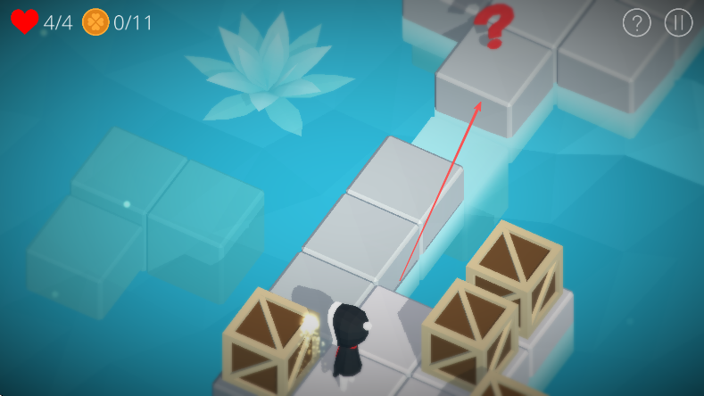 3、繼續(xù)探索,遇到標有問號的方塊,可進行交互,探索隱藏內(nèi)容或獲取提示,收集金幣,保持紅心數(shù)量,完成通關。