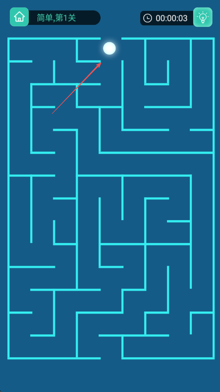 1、進(jìn)入簡(jiǎn)單,第1關(guān),查看右上角計(jì)時(shí)器00:00:03,操控白色小球開始探索迷宮。
