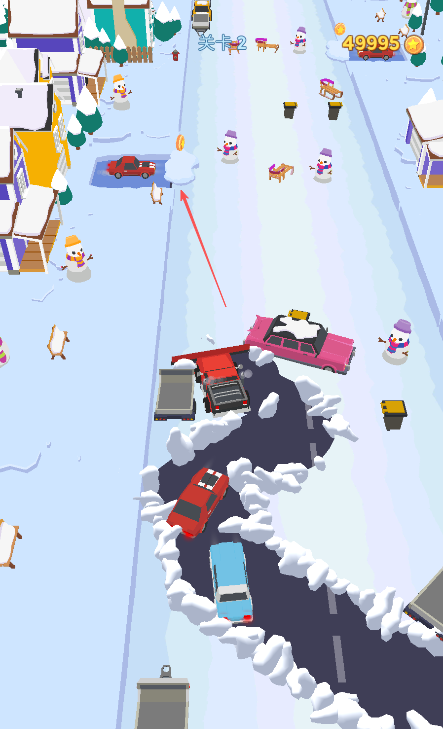 3、進入關(guān)卡2,面對更復(fù)雜路況,繼續(xù)操控清障車清理積雪,解救被困車輛,收集更多金幣,完成關(guān)卡目標(biāo)。