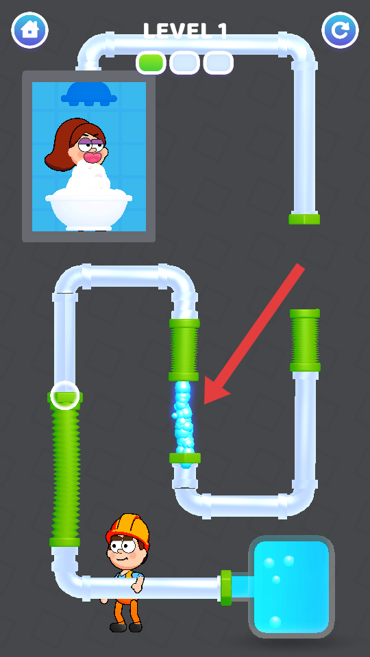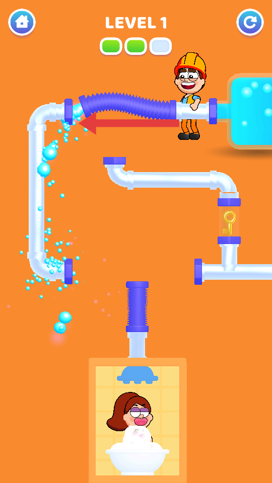 3、即時反饋快感:水管連接的速度越快,玩家能獲得的游戲快感越強烈,當水流成功通過拼接好的管道抵達浴室,玩家能即時感受到解謎成功成就感。
