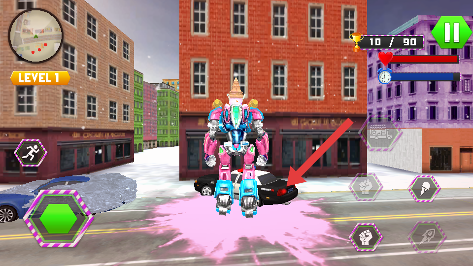 1、雙身份趣味切換:用戶可在冰淇淋制作商與機(jī)器人戰(zhàn)士兩種身份間靈活切換,平時(shí)通過售賣冰淇淋賺取資金維護(hù)戰(zhàn)甲,戰(zhàn)斗時(shí)化身機(jī)器人利用冰凍能力作戰(zhàn)。