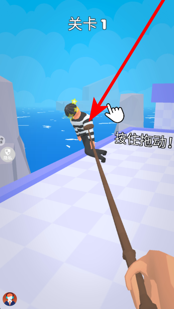 2、擊打后,按照提示按住并拖動(dòng)目標(biāo)角色,通過(guò)拖拽操作,將其移動(dòng)至合適位置讓其掉落,完成該操作要求,將進(jìn)一步推進(jìn)關(guān)卡。