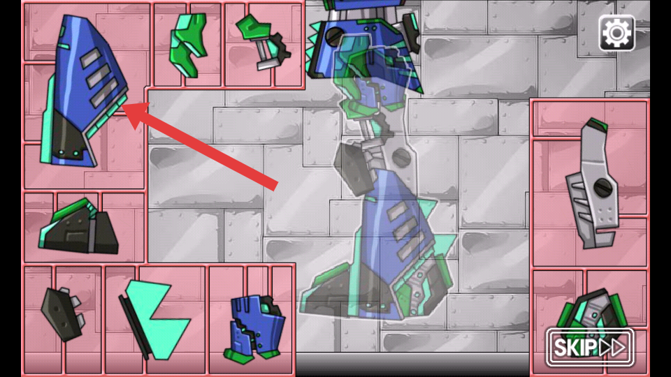2、游戲中,根據(jù)機器人各部分頭部、軀干、四肢形狀和顏色,匹配兩側(cè)的部件,注意部件輪廓契合度,確保拼接正確。