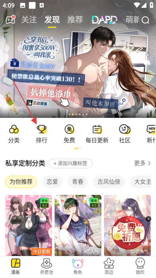 1、點(diǎn)擊排行,進(jìn)入綜合人氣榜頁面。