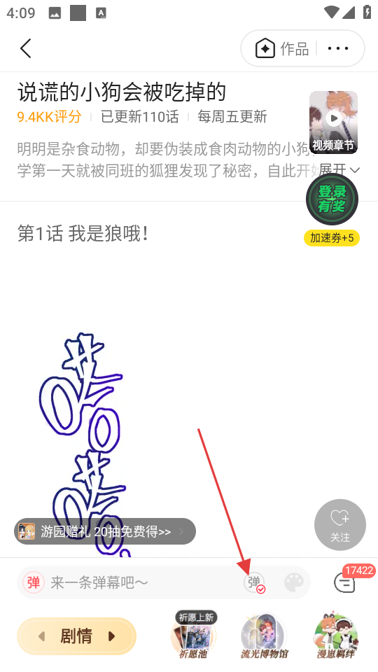 3、在作品詳情頁,可點(diǎn)擊彈幕框的小圈圈關(guān)閉彈幕。