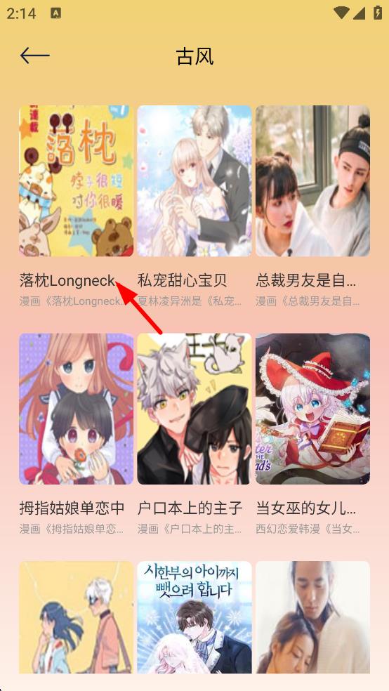2、在古風(fēng)漫畫頁面,點擊目標(biāo)漫畫,進入漫畫詳情頁面。