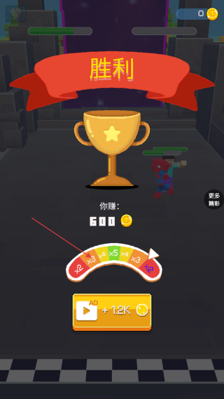 3、持續(xù)攻擊直至擊敗所有敵方小兵,看到勝利提示,完成關卡后可選擇獎勵倍數(shù),獲取金幣獎勵。