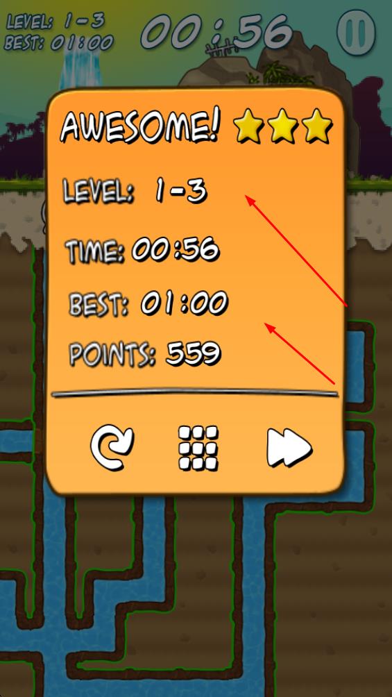 3、若能在規(guī)定時間內(nèi)如56秒成功連通所有水渠,可獲得三星評價與積分獎勵,進而挑戰(zhàn)更高關(guān)卡,優(yōu)化通水效率。