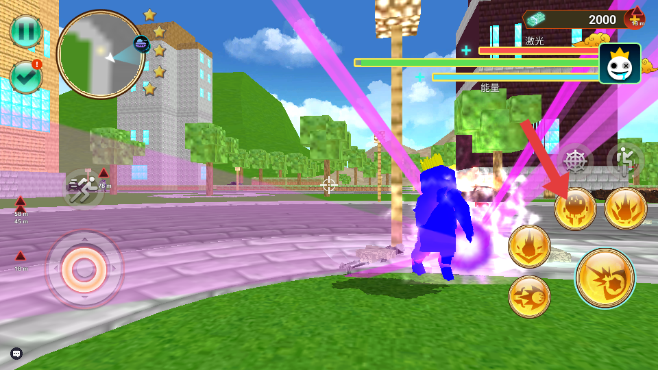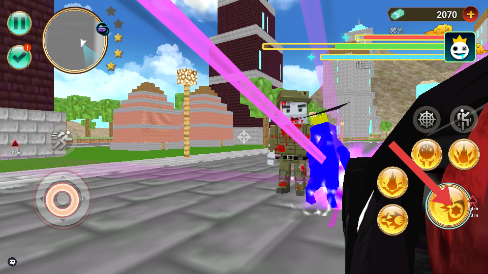 1、在游玩頁(yè)面中,操控角色在像素城市場(chǎng)景移動(dòng)時(shí),注意觀察周圍敵人分布,提前做好戰(zhàn)斗準(zhǔn)備。