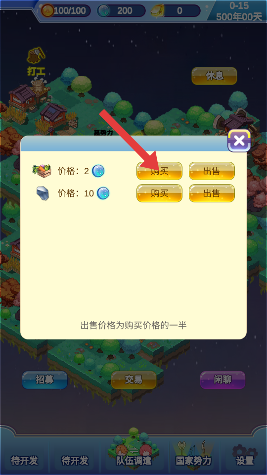 1、先關(guān)注物資交易板塊,可購(gòu)買(mǎi)蔬菜、礦石等基礎(chǔ)物資儲(chǔ)備,也能出售多余物資獲取資源,為后續(xù)經(jīng)營(yíng)打下基礎(chǔ)。