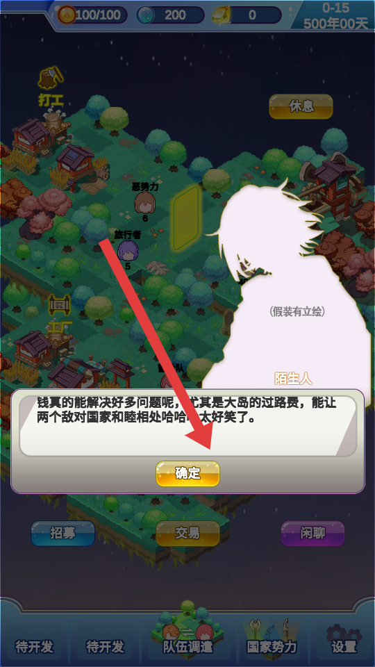 2、遇到與陌生人的對(duì)話劇情時(shí),仔細(xì)查看對(duì)話選項(xiàng),根據(jù)自身經(jīng)營(yíng)需求選擇合適回應(yīng),觸發(fā)額外資源或任務(wù)獎(jiǎng)勵(lì)。