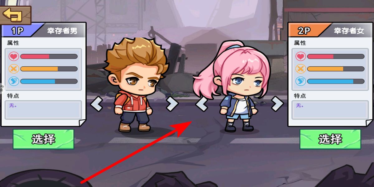 1、開始雙人模式后,先在角色選擇界面,挑選適合的角色,兩側(cè)分別有不同角色可供選擇,選好后點擊選擇,開啟雙人協(xié)作的末日求生之旅。