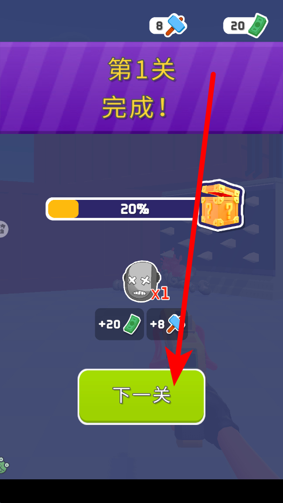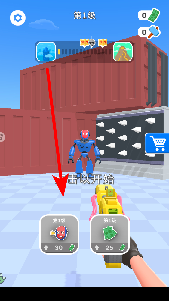 3、當(dāng)成功擊敗機器人后,界面會顯示關(guān)卡完成的提示,同時出現(xiàn)下一關(guān),點擊就能進入下一個關(guān)卡,繼續(xù)挑戰(zhàn)新的機器人,體驗射擊闖關(guān)樂趣。