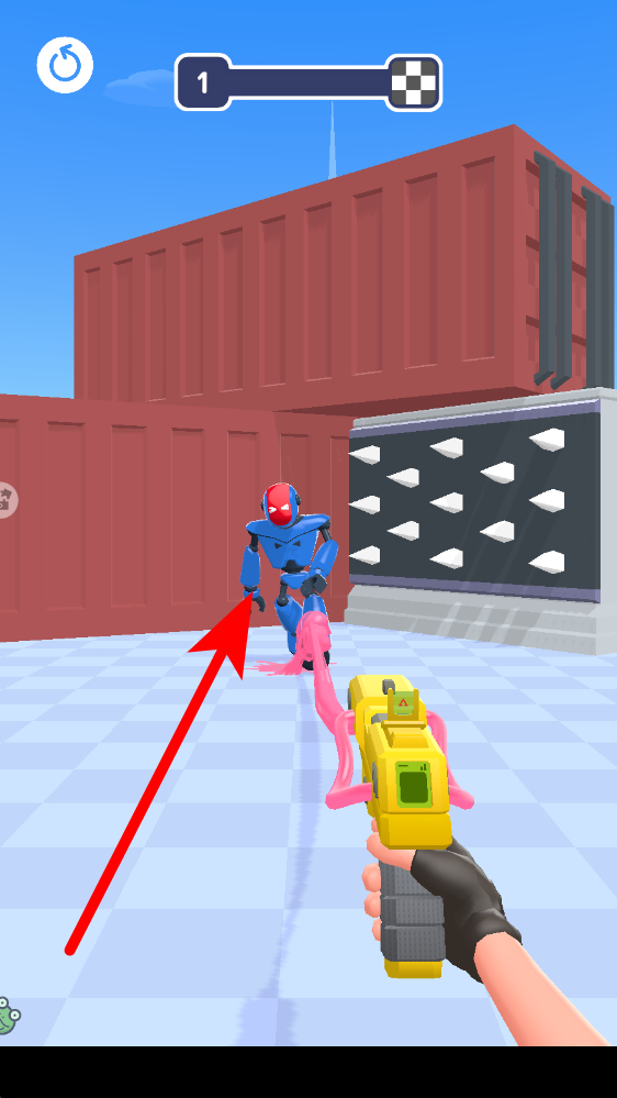 2、在射擊場景里,操控武器對準(zhǔn)機器人進行射擊,武器會發(fā)射出攻擊效果,朝著機器人推進,逐步對機器人造成打擊,推進關(guān)卡進度。