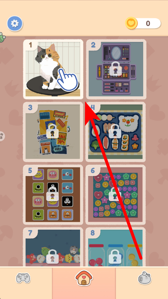 1、新手開始游戲后,看到多個不同的場景選項,挑選帶有小貓的模式,點擊進入,即可開啟與小貓相關的互動環(huán)節(jié),為清洗小貓做好準備。