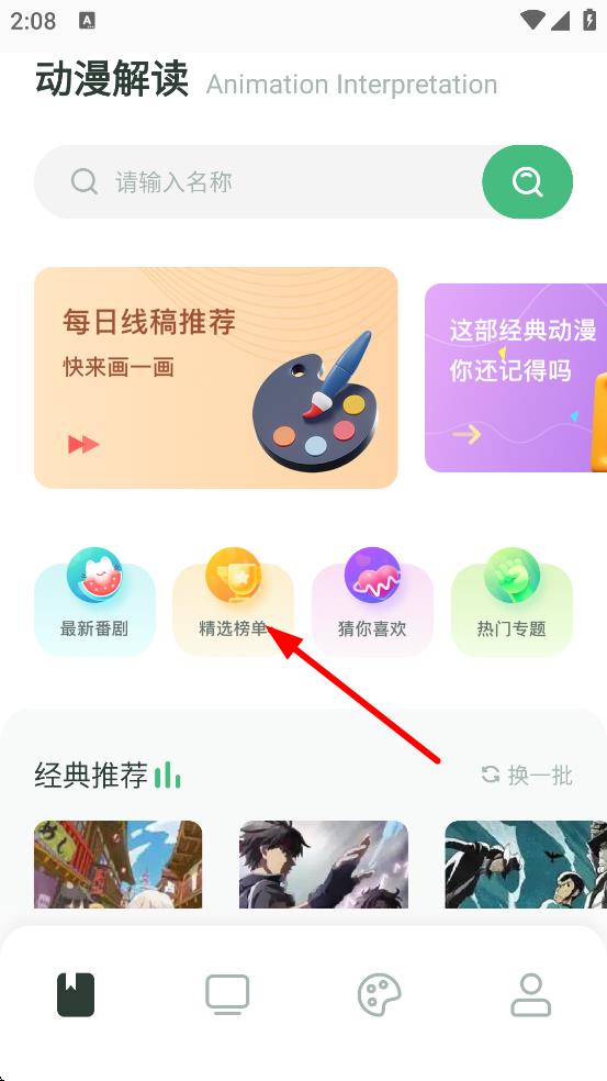 1、在動漫解讀頁面,點(diǎn)擊精選榜單,進(jìn)入精選榜單頁面。