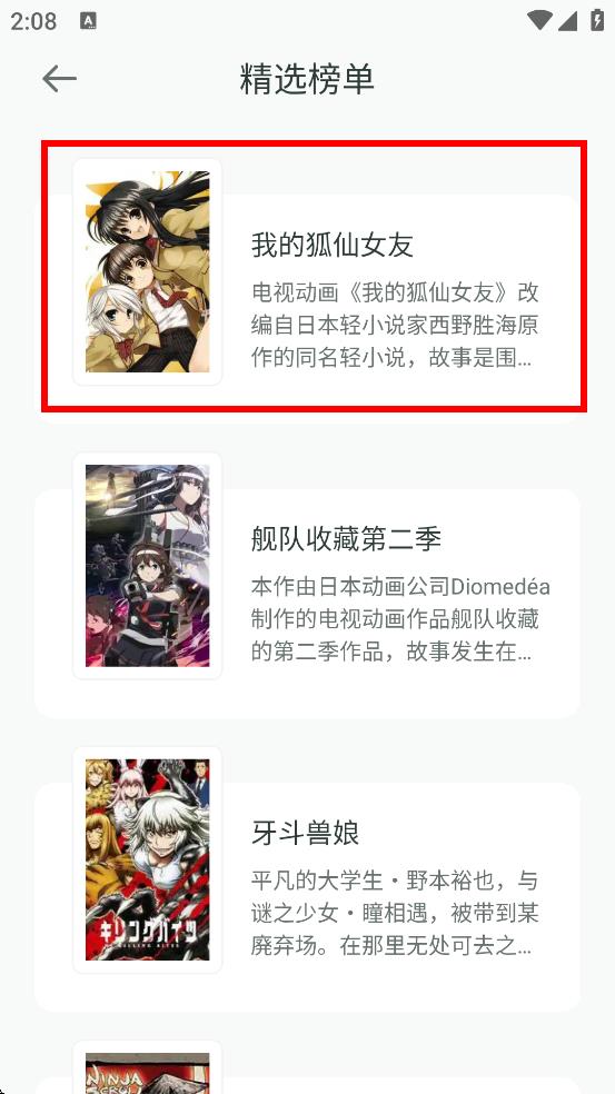 2、在精選榜單頁面,選擇想看的動漫,如我的狐仙女友。